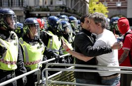 I watched a man splatter another’s nose across his face, the wide, swinging arc of the punch brought home by a counter-balancing bag of warm Stella Artois clasped in the other hand. Royal red blood streamed, standing out from the clear blue sky above. The victim was a photographer, his assailant a thug who’d come to Parliament Square, Westminster to “defend statues.”
