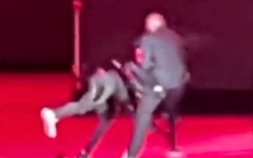 The clip has been doing the rounds on Twitter and shows the moment that a man runs on stage and tackles the comedian in the stomach.
