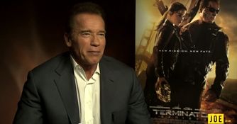 They discussed the actor’s return to the robotic role, what it’s like to beat the crap out of yourself in some awesome Arnie-on-Arnie action, and people impersonating that world famous accent.