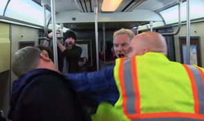 The livid New Yorker shouts: “Hey, fellas! Knock it off! You’re annoying everyone on the train!”