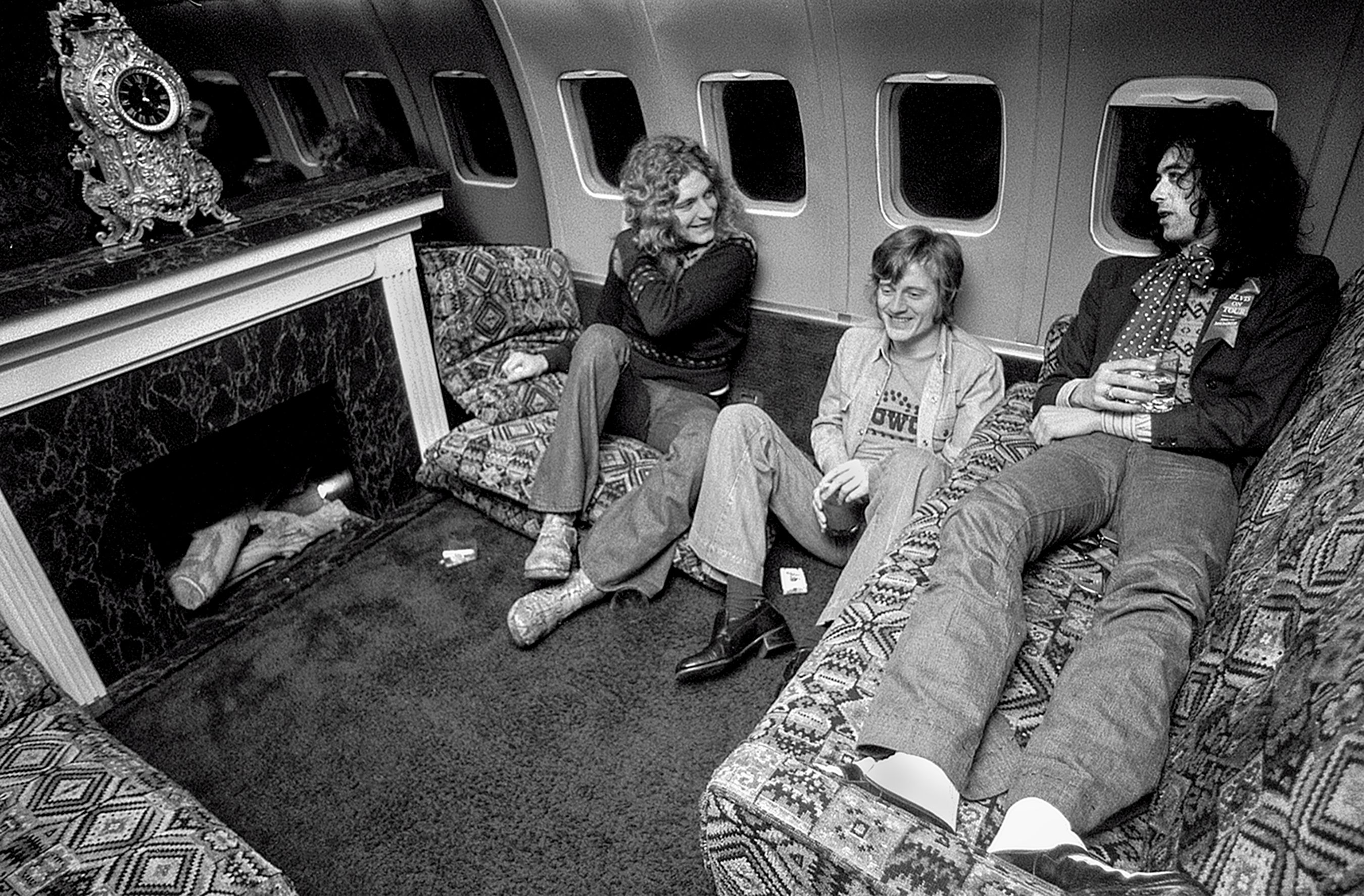 This is a snap of the heavyweight rockers, taken by photographer Michael Brennan, chilling out in one of the back rooms on their famous Boeing 720.