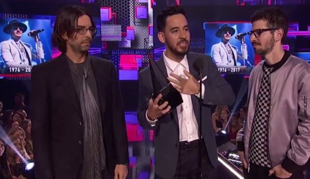 Taking to the stage to collect their award for favourite alternative rock artist, band members Mike Shinoda, Brad Delson and Rob Bourdon dedicated the award to Bennington’s memory.