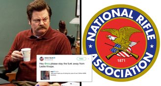 If you don’t know, that’s Leslie Knope, the local government bureaucrat from the excellent NBC sitcom Parks and Recreation, who is played by Amy Poehler. And the show’s cast and staff were none too happy to be co-opted by the NRA.