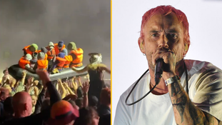 One Twitter user wrote: “The Daily Mail is gonna have an aneurysm about this Idles set, they got the crowd to shout “fk the king” called Farage a fascist, had a prop of kids in a small boat crowdsurfing during a pro immigration song and ended by shouting ceasefire now. F**king legends.”