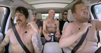 Then of course, in true RHCP fashion, they take their tops off and the Late Late show host joins in.