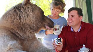 After their morning greetings, Yuriy, Svetlana and Stepan settle down at their outdoors kitchen table to start the day off with a well balanced meal. Stepan, a literal bear, eats a large pot of yoghurt with all the ease and grace that you would expect from an animal that could eat the two humans sitting beside him to finally achieve a feeling of being full, if he so wished. The film crew have brought him a cake, which the couple foolishly slice up and serve him one singular piece on a plate. This lad is a big unit, one measly slice of cake was never going to sate his appetite. He gets quite agitated, aggressively biting his own paw to signify to the duo that he wants more cake. Obviously he wants more cake, he wants the entire fucking thing you morons. They proceed to spoon-feed Stepan until he calms down and poses less of a murderous threat.