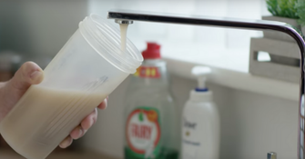 For the system to work, protein powder must be put into the filtration compartment, which sits under the sink. When the tap is turned on, the system mixes the powder with water and pumps it through the tap.