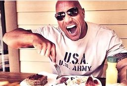 Sean Evans bravely ploughed through the seven meals a day which keeps the Rock looking huge.