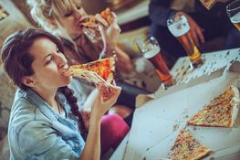 Try not to get sucked into the pressure of eating every scrap of food on your plate. “Try and pay attention to how your stomach is feeling and eat slowly, rather than eating everything that’s in front of you. It’s important that you eat to feel satisfied, as opposed to stuffing yourself,” says Shona.