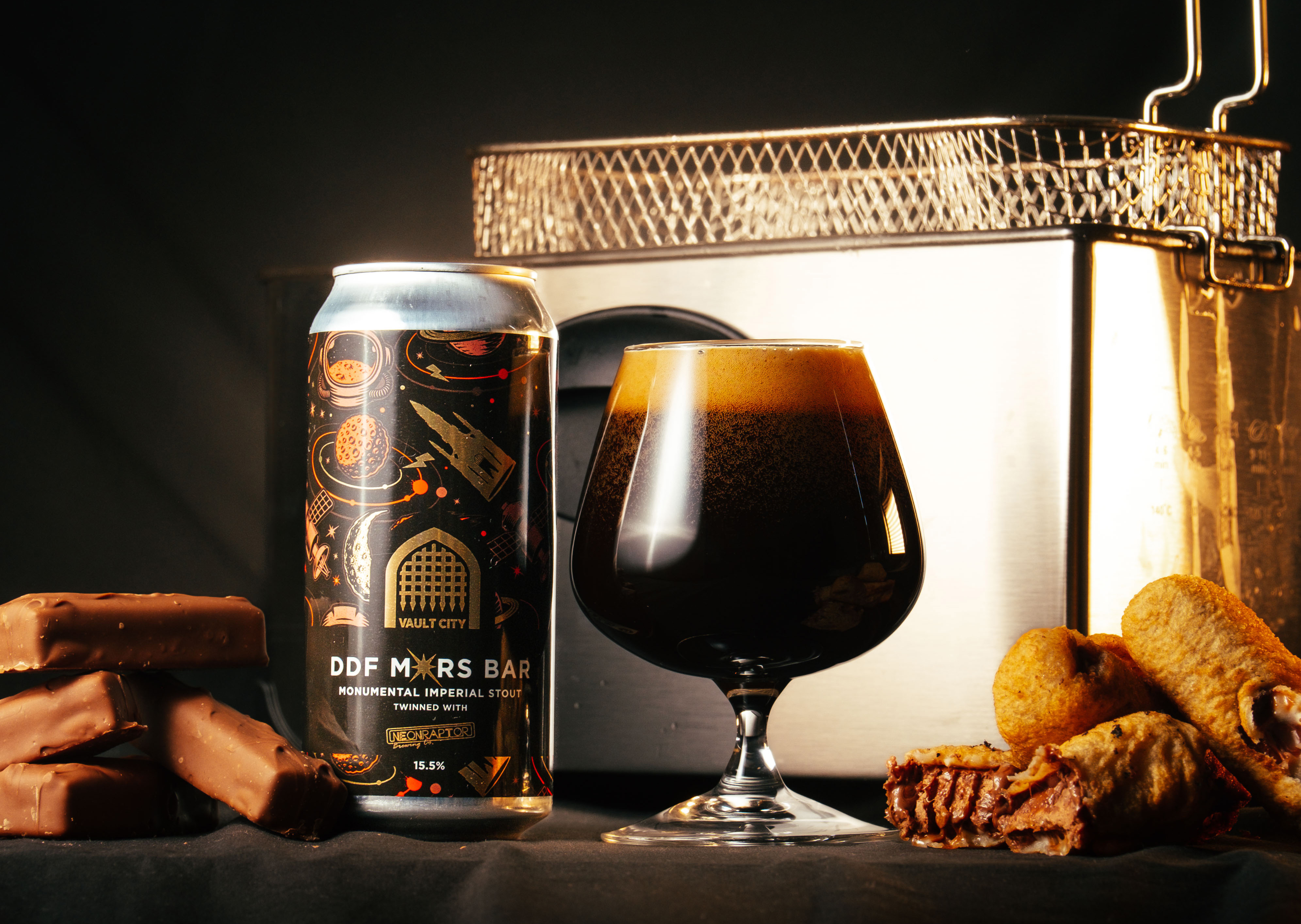 They worked with Neon Raptor Brewing Co. to pack the imperial stout to the brim with chocolate malt and cacao nibs, even using real battered Mars bars during the top-secret production process to guarantee an authentic deep-fried flavour.