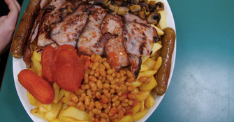 The restaurant responsible is the aptly-named Fat Boys Cafe in Croydon. The breakfast is rather ominously termed ‘The Blowout’. It consists of two eggs, six rashers of bacon, two sausages, a fried slice, mushrooms, beans or tomatoes, and a mammoth 1.2 kilograms of chips.