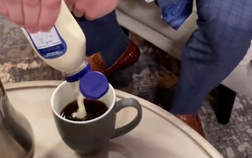 We know Americans often take tea and coffee much different than we Brits, with creamer often and half and half etc, but we’re fairly confident when we say putting a condiment you’d find on a burger or put chips from a takeaway, in a hot beverage is pretty left-field.