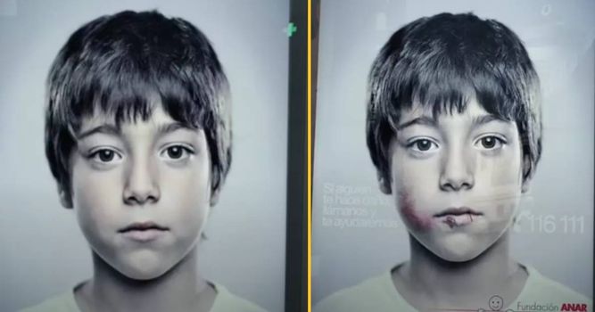 The advert, which was created by the ANAR Foundation in a bid to help children who are being abused, shows a message reading: “Sometimes, child abuse is only visible to the child suffering it.”