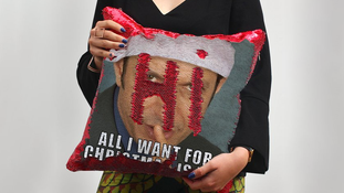 The Jeff Goldblum Sequin Pillow is, as the name suggests, a sequin cushion that, when brushed in the right way, reveals the face of beloved actor Jeff Goldblum and a message: all he wants for Christmas is you.