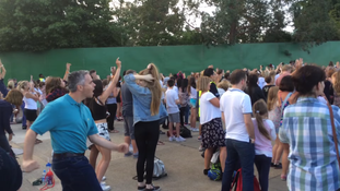 Draped in the classic dad attire of a polo shirt tucked into a pair of jeans, this dad at at The Vamps in Thorpe Park brought the genre to a whole new level.