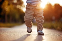 When the soles of their feet touch a flat surface they will attempt to walk by placing one foot in front of the other. This reflex disappears at six weeks due to an increased ratio of leg weight to strength. It reappears as a voluntary behaviour around eight months to one year old.
