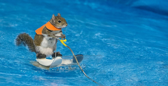 The undeniable star of the show is Twiggy, a ten-year-old water-skiing squirrel, who’s been performing every day.