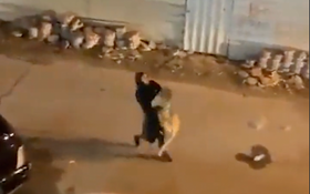Captured on the streets of Sabahiya, just south of Kuwait’s eponymous capital city, the as-yet-unidentified woman can be seen carrying the flailing lion which had escaped from its home.