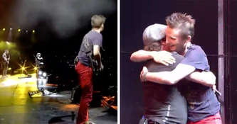 Muse were visibly delighted that the rock legend was actually there on stage with them, with singer Matt Bellamy breaking into a massive smile as he hugged Johnson.