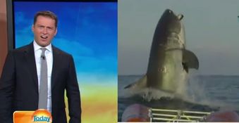 Channel 9’s Karl Stefanovic and Lisa Wilkinson were watching a segment on great white shark which culminated in a 4.5m whopper leaping straight out of the water.