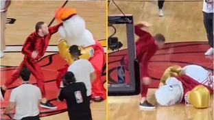 ‘Notorious’ floored the mascot with a with a vicious left-hook, before landing a punch straight on the mascot’s face from above.