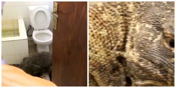 Instead, what he got was the exact opposite: a komodo dragon (and a pretty big one at that) hanging out in his bathroom.