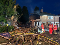 Video of the blast on social media shows the house in flames, and debris scattered in front of the property.