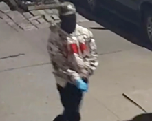 The man is described as a male in his 40s with a dark complexion, stocky build and standing at around 5 “8. He was last seen wearing a dark green baseball hat, black face mask, blank pants, black shoes, blue latex gloves and a white hooded sweatshirt with a pattern design.