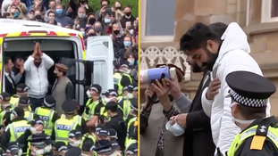 “We’re here against the hostile environment created by the Tories and the British state. The same people who run from the British and American bombs put at the back of the van right now. And they are about to be deported. And it’s on Eid you […] the guys are not even allowed to pray. How do you do that in a democratic society? It’s a sad day.”