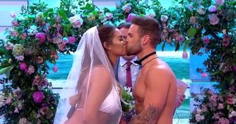 The ceremony was a diorama of modern romance. Dom dressed as a butler in the buff moments before the final reveal, Jess in a traditional bikini and veil. They said their vows, they exchanged rings.
