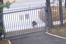 The long-tailed protester gives the gates a good battering before realising it was far too big to fit through the gaps.