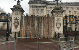 The gates of the King’s residence have been boarded up after the incident.
