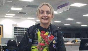 The force posted an image of the officer holding a bouquet of red carnations with the caption: “Last night, PC Millyard assisted in talking a suicidal male down from a bridge. Today, he came to the station with some flowers to say ‘thank you’ for her efforts.”