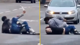 One of the men manages to disarm the other while an onlooker can be heard saying: “He’s stabbing him up, he just took that knife about ten times you know.”