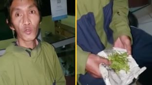 In the video the man, who claims to be a motorcycle taxi rider, says he brought the ‘weed’ for 50,000 Rupiah ($3.49), only to find out that it was just “ordinary leaves.”