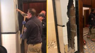 Firefighters were called to the Landmark Theatre in Syracuse, New York state, at around 07.30 on Friday morning after someone was heard banging on the wall and crying for help.