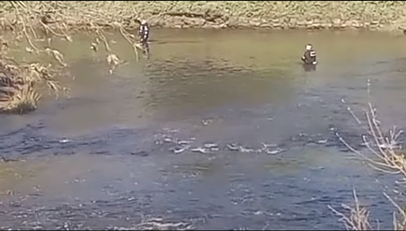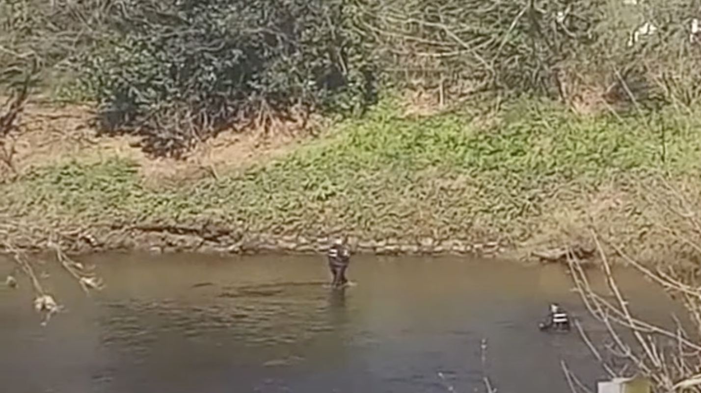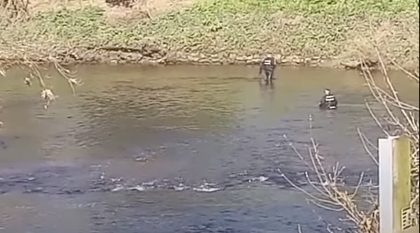 Police divers wading through the River Wyre (YouTube/Maria Solarz)