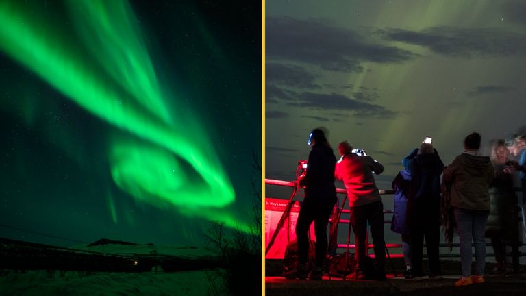 If you’re still struggling to get a clear sight of the lights, advice follows that a phone camera can help locate them as they detect the colourful display more effectively than the human eye.