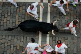 The man took a horn to the buttocks during the annual bullrunning fiesta in Teulada, Spain.