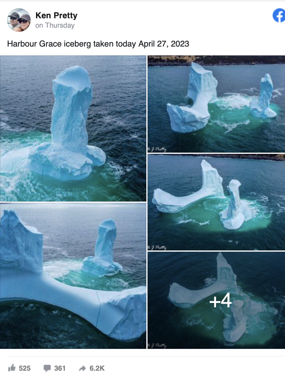 However, for those hoping it’s still there, Pretty – who hails from the town called Dildo (how ironic) – revealed that the iceberg changed shape a day later.