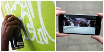 At the bottom left corner of the piece is a QR code. When scanned, you are brought to a video of a police raid on the refugee camps in Calais.