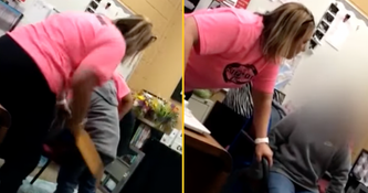 In the viral video, the pupil was then spanked three times with a wooden paddle and told to apologise to her mother.