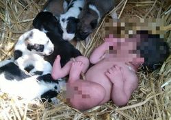 They said: “It’s possibly the warmth from puppies and their mother itself who had kept this newborn alive.