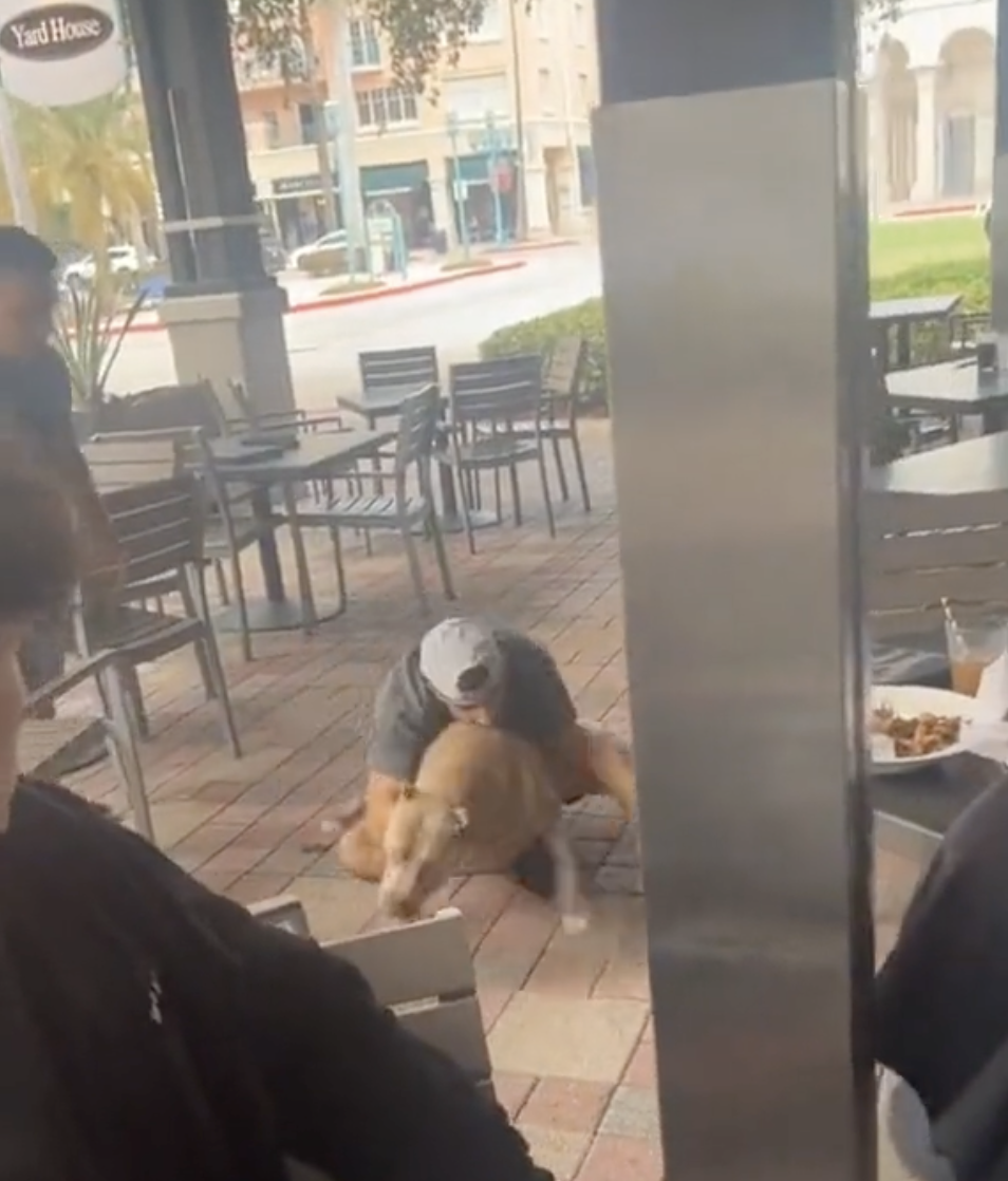 Eventually, the dog is wrestled to the ground by the man, who shouts for its leash. It is unclear who the dog’s owner was.