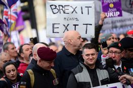 White nationalist Generation Identity and the anti-Islam For Britain movement were among groups flying flags at the ‘Brexit Betrayal’ march, which comes after a week that has seen Nigel Farage, Paul Nuttall and a number of the UKIP MEPs desert the party due to its further move to the right.