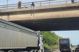 The driver saw the distressed man hanging off the edge of the bridge and proceeded to park his lorry underneath so as to stop him from jumping. The trucker wouldn’t move the vehicle until others arrived to escort him from off the bridge. Fantastic teamwork.