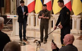 As you can see in the clip, prior to Zelenskyy handing over the well-deserved accolade, an ever-alert Patron – whose name is said to mean ‘cartridge’ in Ukrainian – offers a few barks in Trudeau’s direction, as the two joke that he might have sniffed a treat in his pockets.
