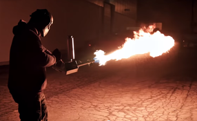 We can see nothing that could possibly go wrong with this invention: A hand-held flamethrower.