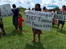 Images on social media show protestors holding signs, with one reading: “Colonial legacy of theft continues with Prince & FFI.”