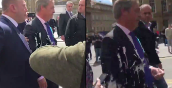 Nigel Farage has become the latest right-wing political figure to have a milkshake thrown at him in the run-up to the European Elections.